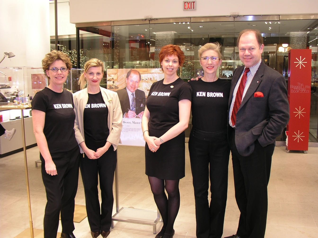 These four scented ladies met me at the door when I arrived for my ESTEE’ LAUDER three-day engraving event at HOLT RENFREW in Toronto, Ontario, in the fall of 2002. Much to my surprise, each of them, along with a dozen or so more in the cosmetics department, wore a black T-shirt with KEN BROWN emblazoned across the chest.